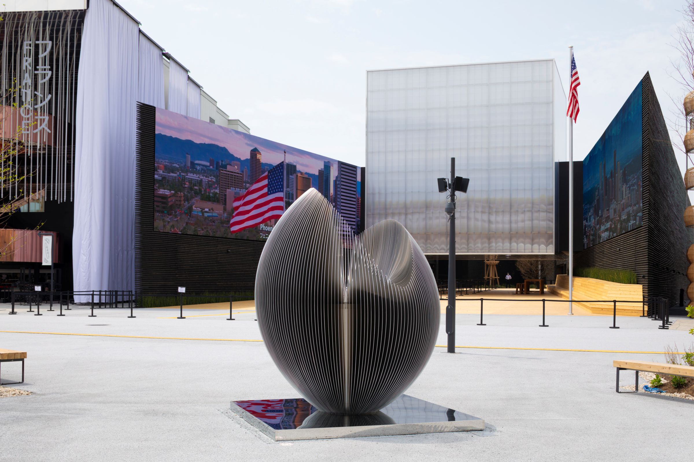 2025年日本国際博覧会(大阪・関西万博)のアメリカ館とフランス館の間の屋外空間〈光の広場〉に配置されるパブリックアート「Player Vessel」を制作した。2024年に甚⼤な被害をもたらした能登半島地震の復興への祈りを込めて、「⼿と⼿を合わせる」、「地球」を想起させるデザイン。高さ2.4m、直径2m、重量3tのパブリックアートは、厚み3mmのアルミニウム金属板が世界の国数と同じ196枚、極めて高度な構造設計の中で接合されている。太陽の光をたっぷり浴びて、煌びやかに反射し、共鳴し合い、幻想的なモアレを創出して、まさに「光の広場」の象徴となって、明日の世界の未来を照らしている。
