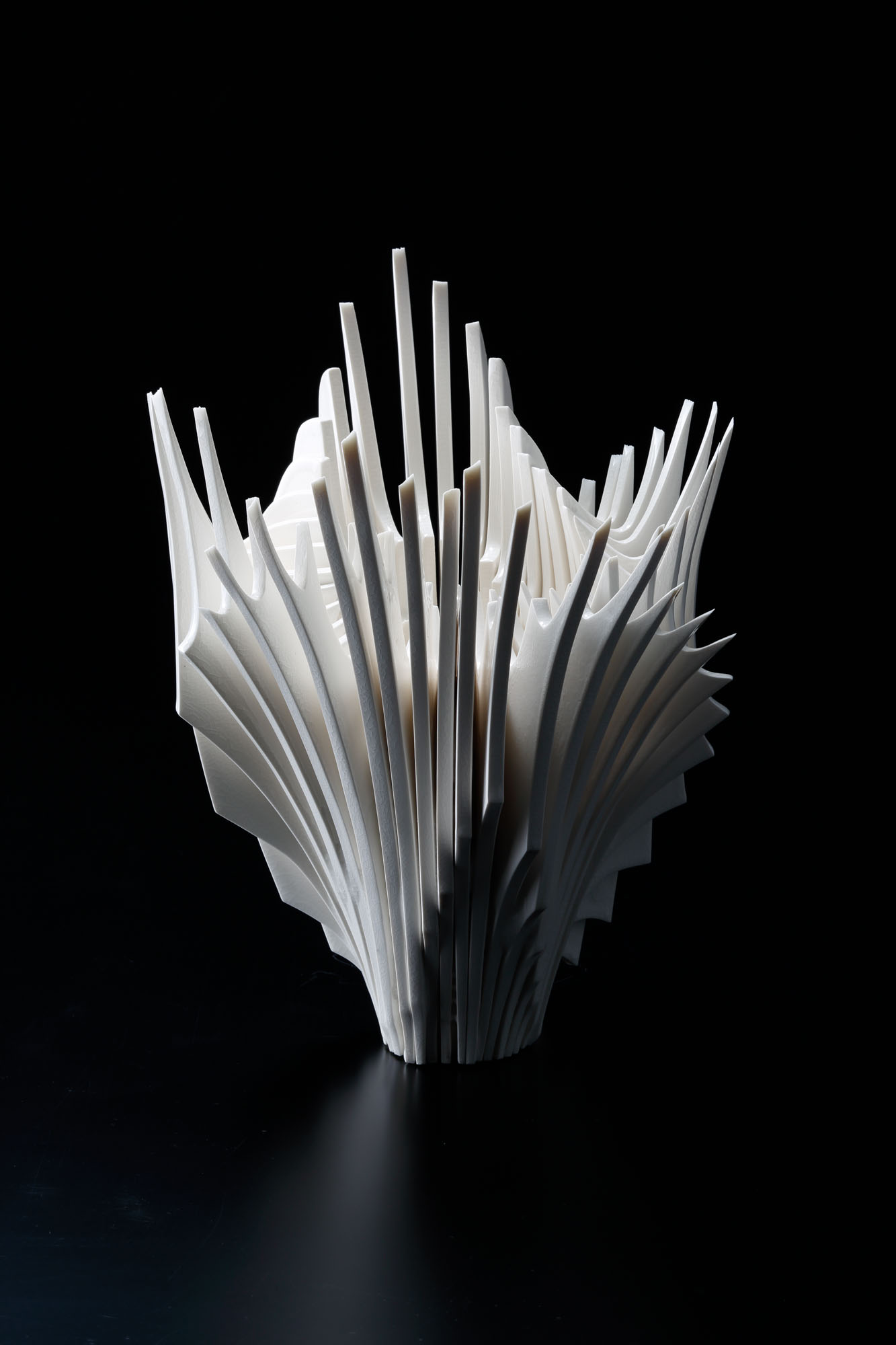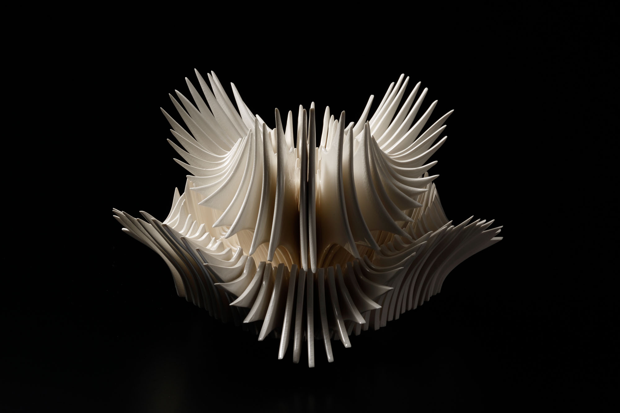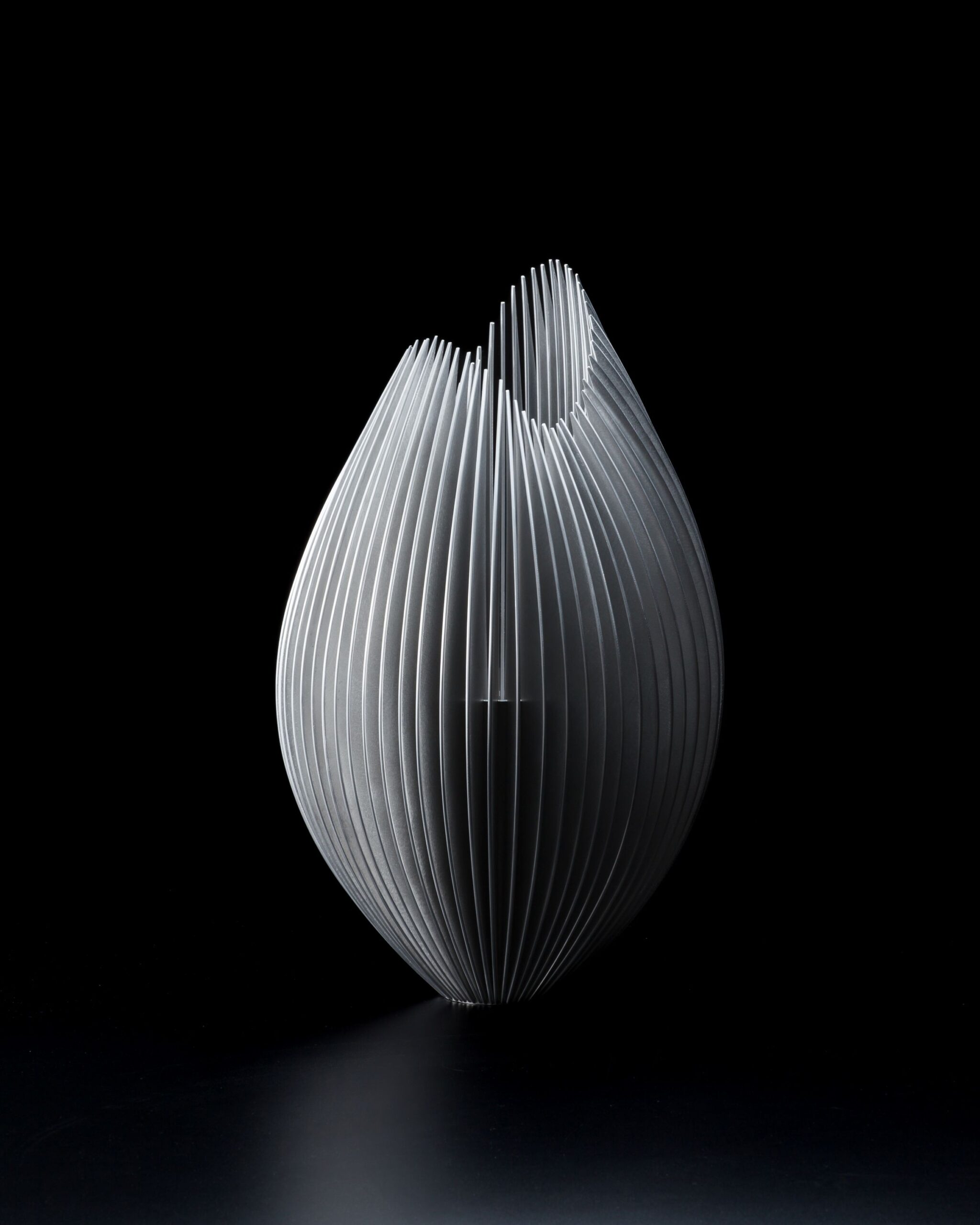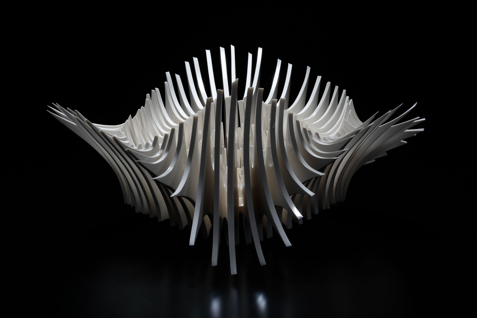 I created the public art, “Player Vessel,” which will be installed in the “Plaza of Light,” an outdoor space between the American and French pavilions at Expo 2025 Osaka, Kansai, Japan. The design evokes hands clasped together and the Earth, expressing prayers for recovery from the devastating 2024 Noto Peninsula earthquake. The 2.4m-tall, 2m-diameter, 3-ton public art installation is made up of 196 3mm-thick aluminum plates—the same number as the number of countries in the world—joined together in an incredibly sophisticated structural design. Bathed in abundant sunlight, the plates brilliantly reflect and resonate with each other, creating a fantastical moiré pattern that truly symbolizes the “Plaza of Light” and illuminates the future of the world.