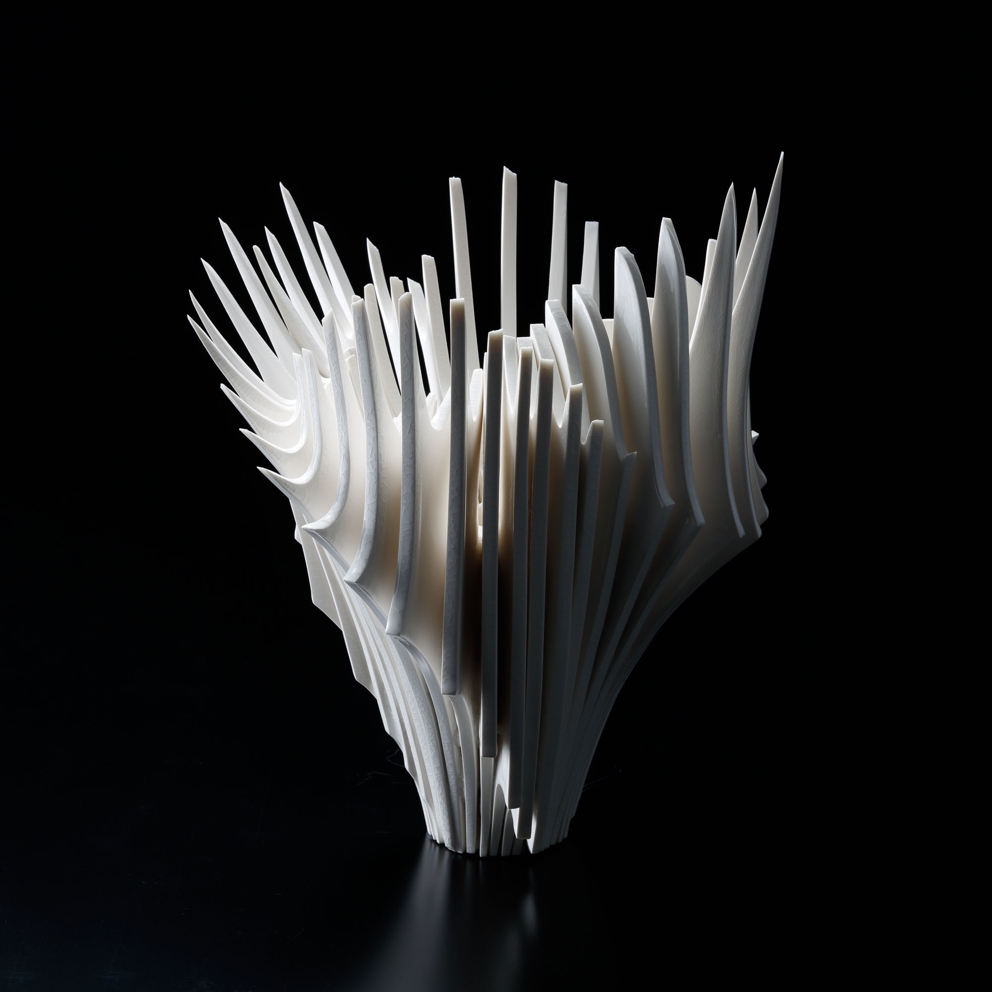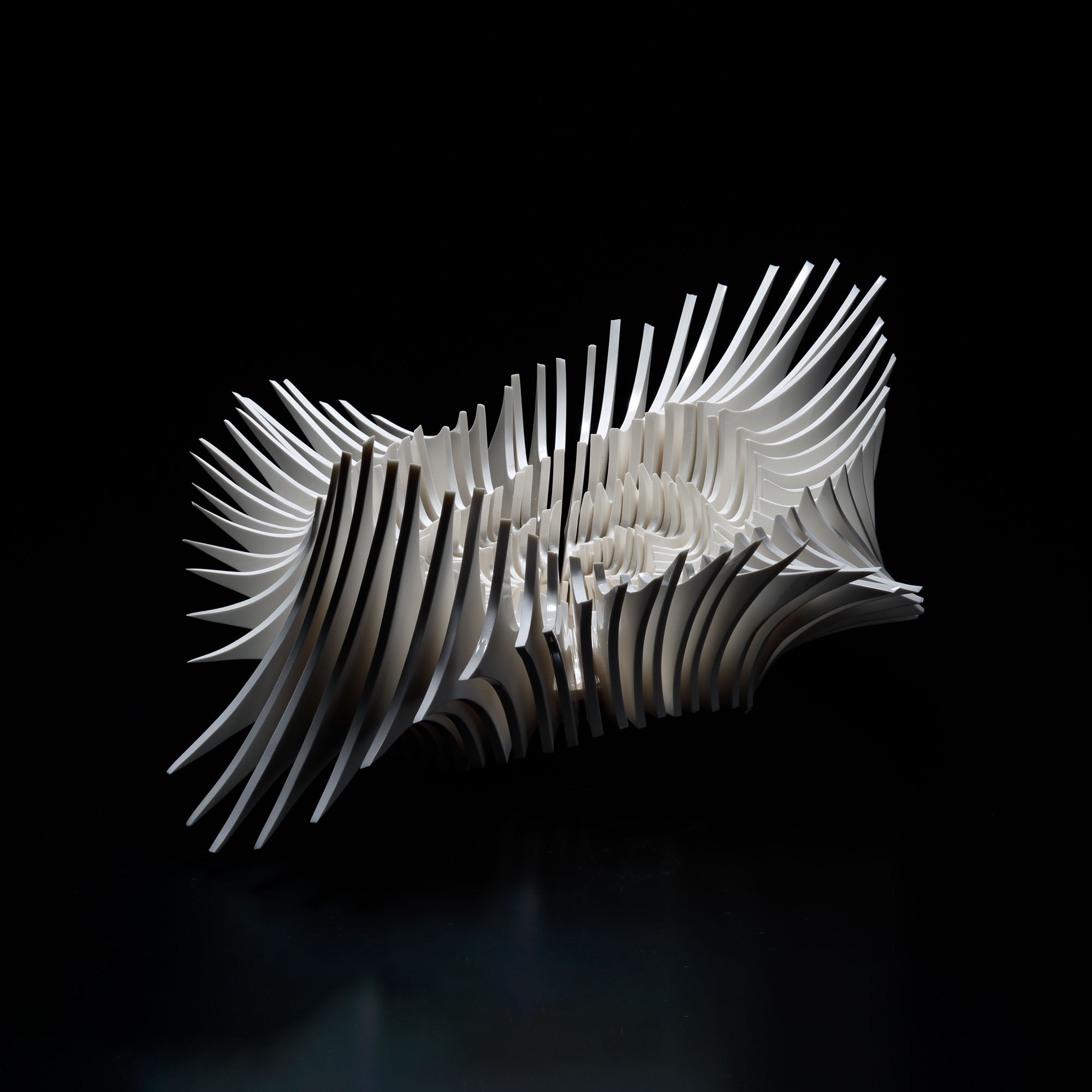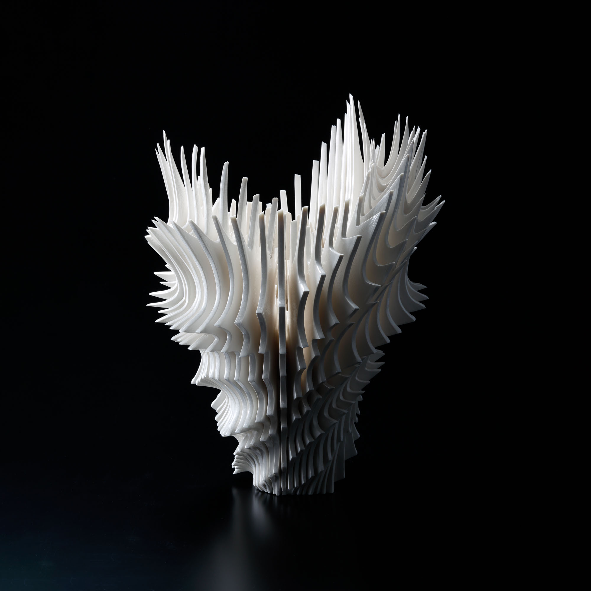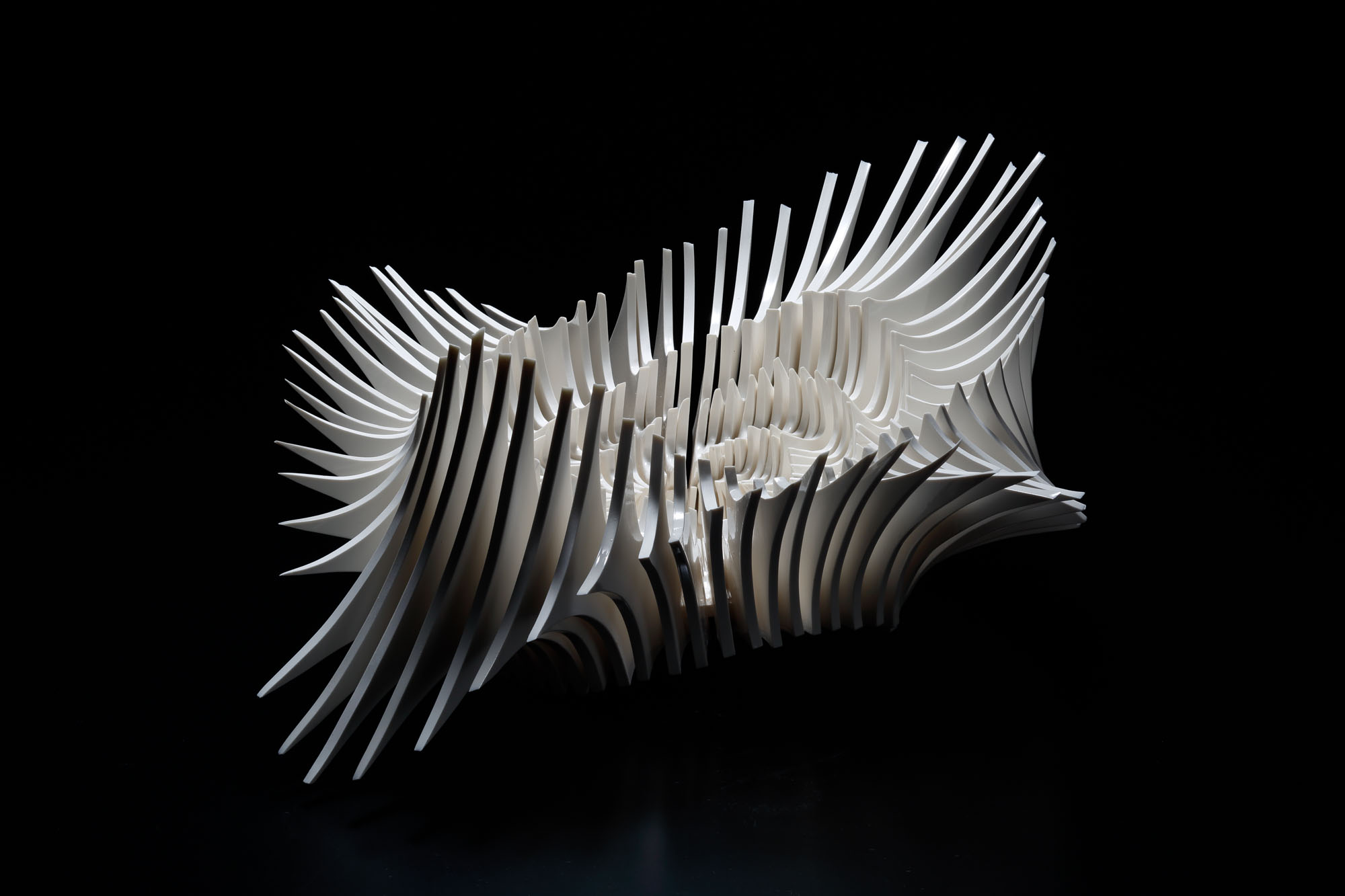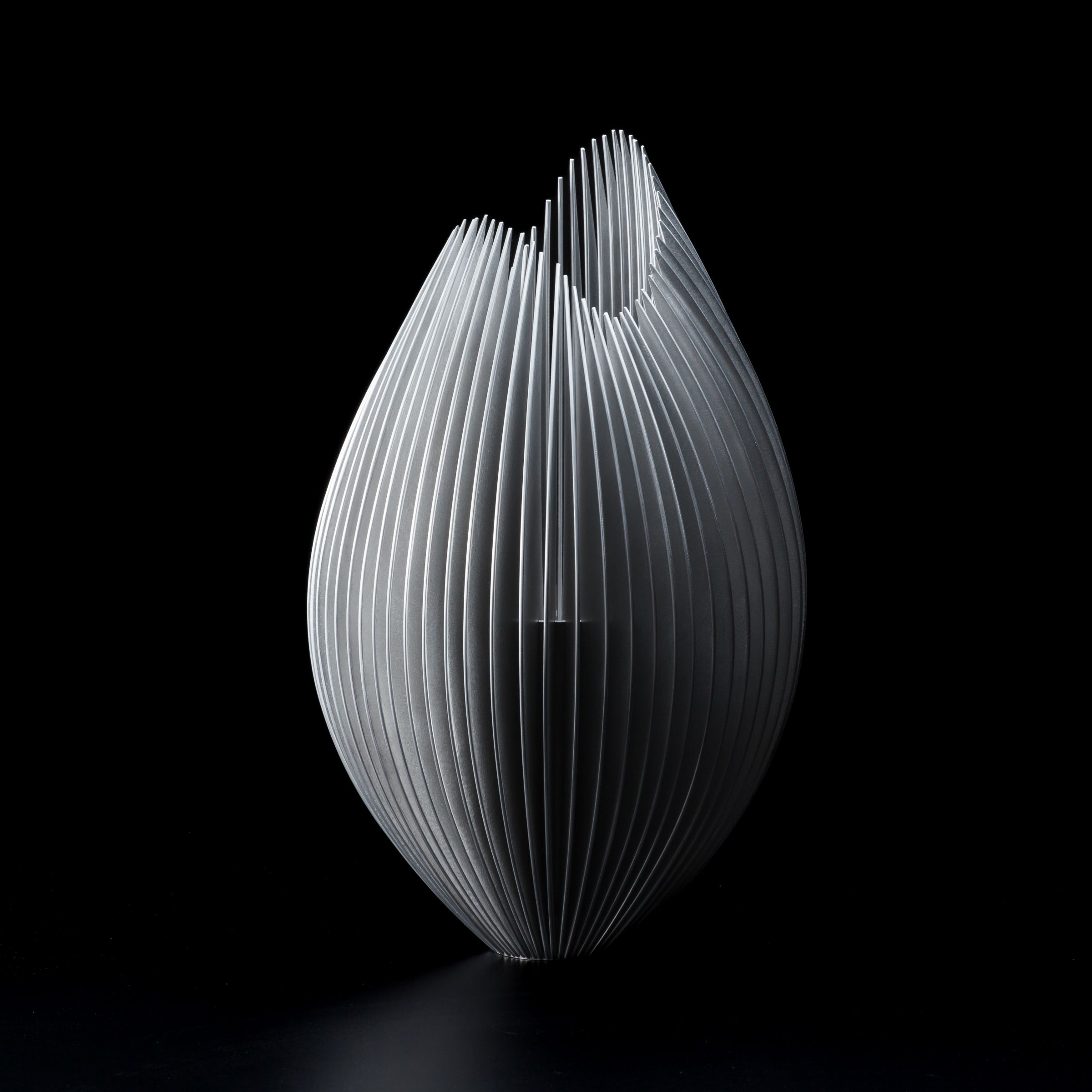 I created the public art, “Player Vessel,” which will be installed in the “Plaza of Light,” an outdoor space between the American and French pavilions at Expo 2025 Osaka, Kansai, Japan. The design evokes hands clasped together and the Earth, expressing prayers for recovery from the devastating 2024 Noto Peninsula earthquake. The 2.4m-tall, 2m-diameter, 3-ton public art installation is made up of 196 3mm-thick aluminum plates—the same number as the number of countries in the world—joined together in an incredibly sophisticated structural design. Bathed in abundant sunlight, the plates brilliantly reflect and resonate with each other, creating a fantastical moiré pattern that truly symbolizes the “Plaza of Light” and illuminates the future of the world.