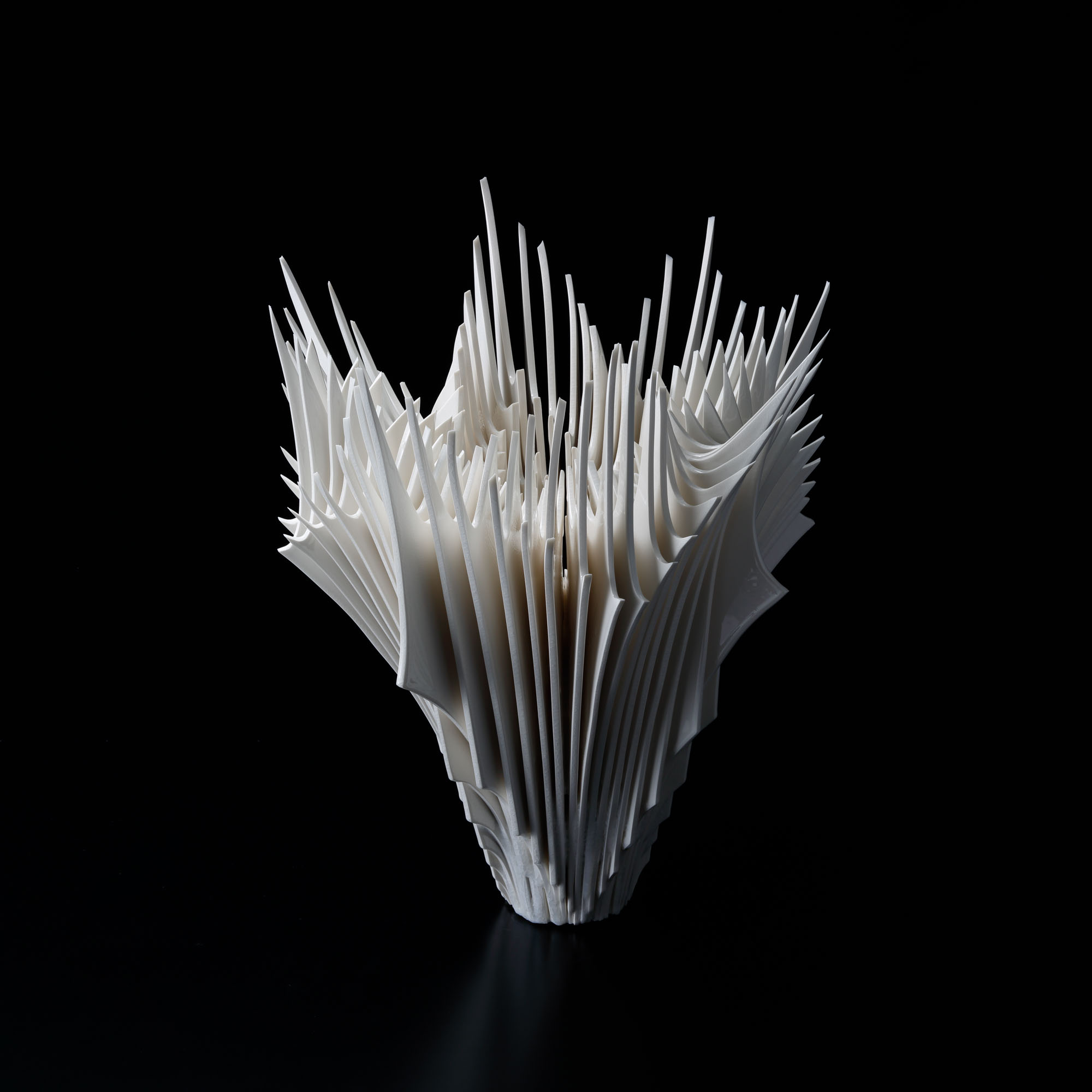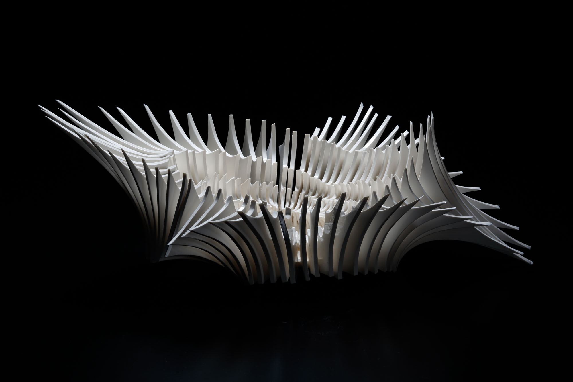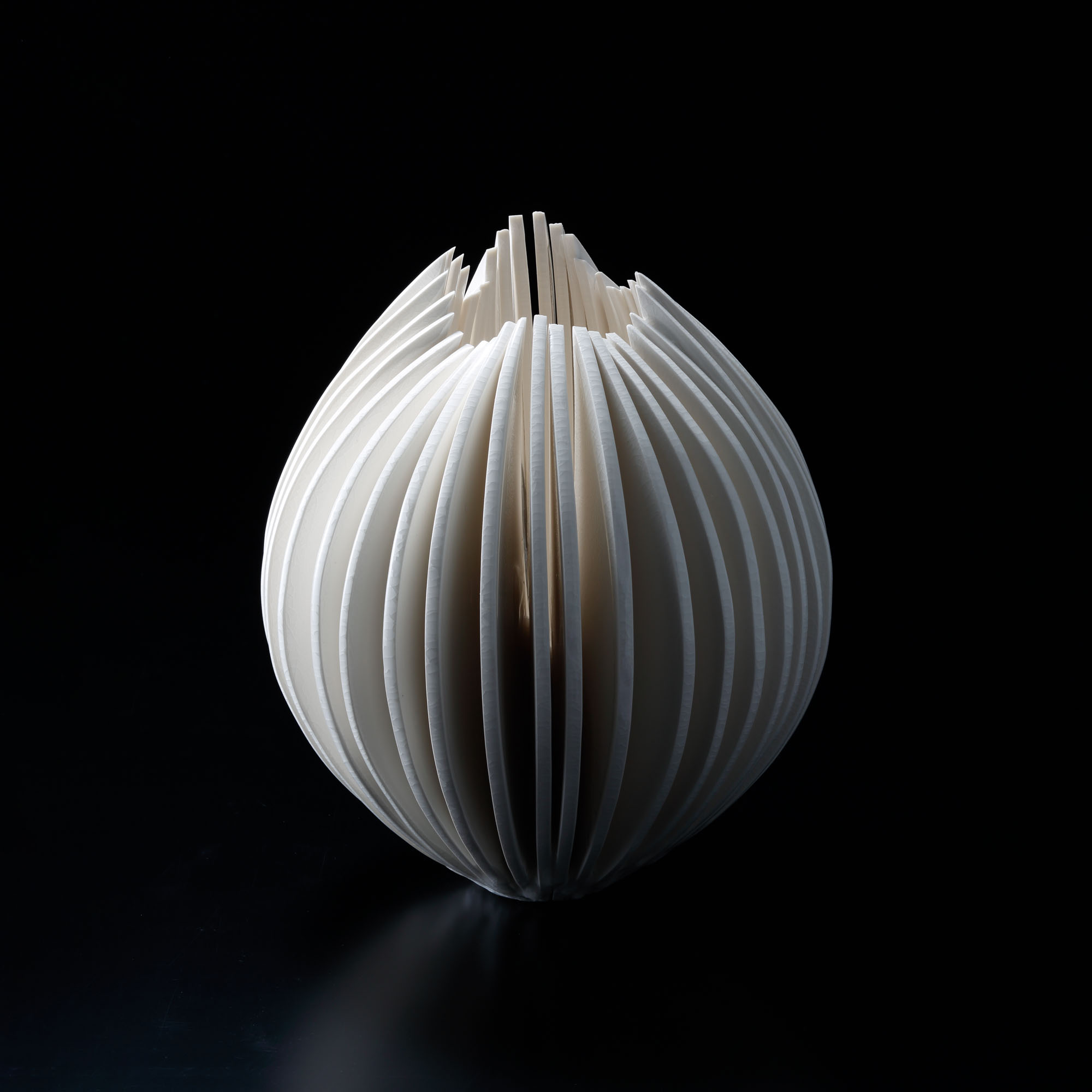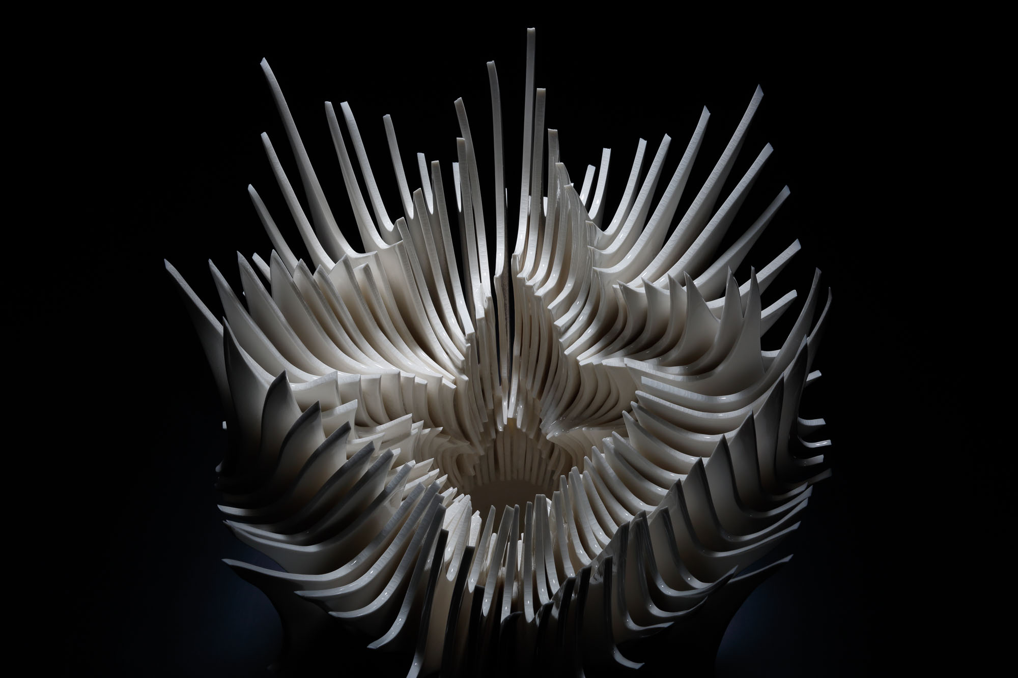 I created the public art, “Player Vessel,” which will be installed in the “Plaza of Light,” an outdoor space between the American and French pavilions at Expo 2025 Osaka, Kansai, Japan. The design evokes hands clasped together and the Earth, expressing prayers for recovery from the devastating 2024 Noto Peninsula earthquake. The 2.4m-tall, 2m-diameter, 3-ton public art installation is made up of 196 3mm-thick aluminum plates—the same number as the number of countries in the world—joined together in an incredibly sophisticated structural design. Bathed in abundant sunlight, the plates brilliantly reflect and resonate with each other, creating a fantastical moiré pattern that truly symbolizes the “Plaza of Light” and illuminates the future of the world.